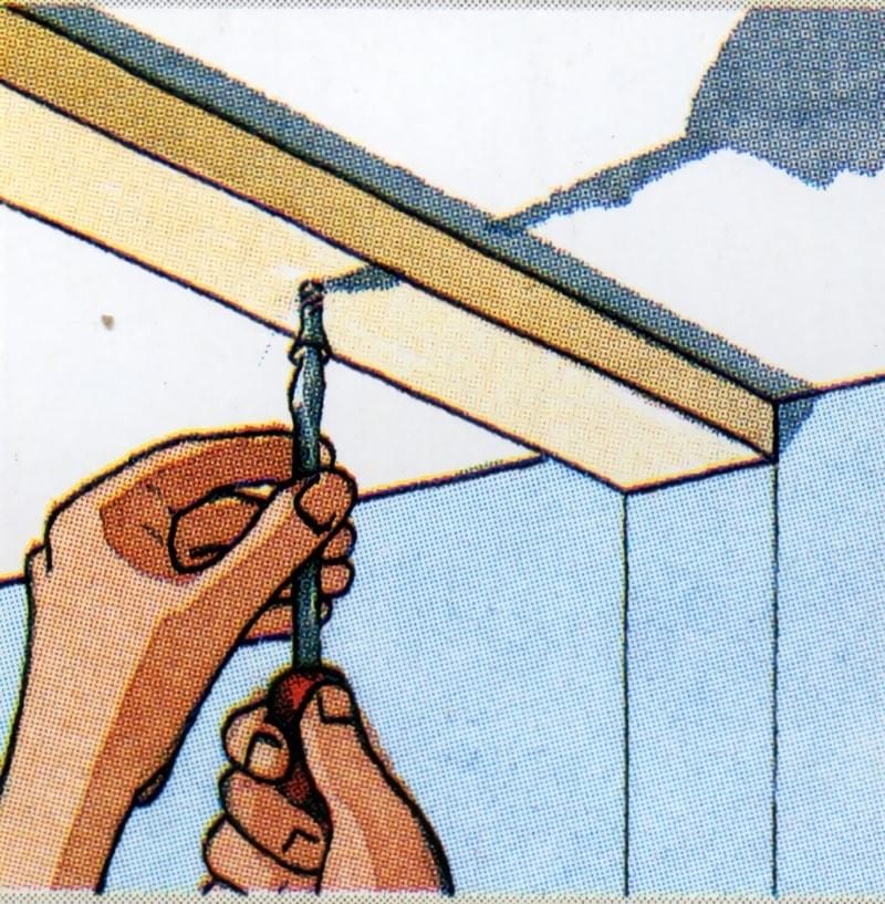 Situé la barra que actúa de referencia lado a lado del techo y fíjelo con tornillos largos.