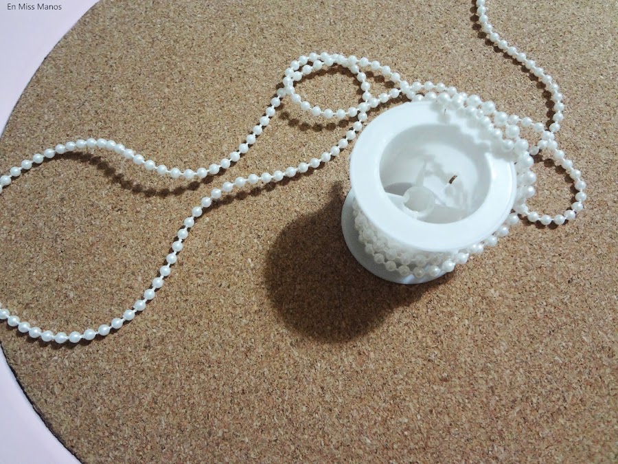 Como mi cara perfeccionista no me dejaba tranquila al ver que no quedó justo encajado al borde en todo el óvalo, miré entre mis cuerdas y cintas y tenía esta tira de perlas que me pareció buena idea para colocar y disimular.