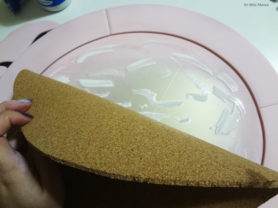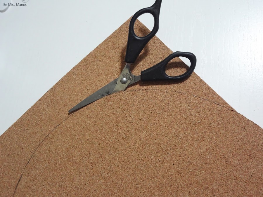 Compré una lámina de corcho y dibujé la silueta de la parte central y la recorté con tijeras, ya que era finita.