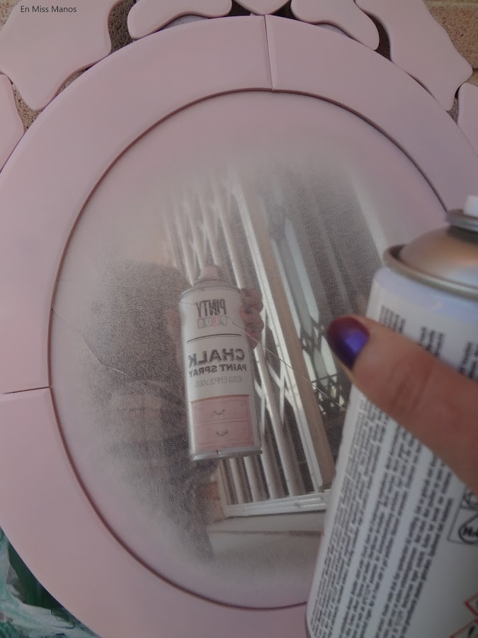 Me sobró spray chalk paint de mi anterior proyecto de los Clipboards y usé el color rosa pastel, o ya que este año es su año Pantone y tendencia...el Rosa Cuarzo, para pintar el marco de alrededor.