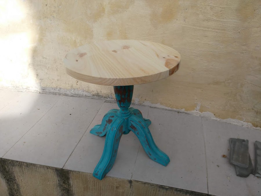 Como sexto paso una capa de cera al tablero y a las patas y dejar secar bien.