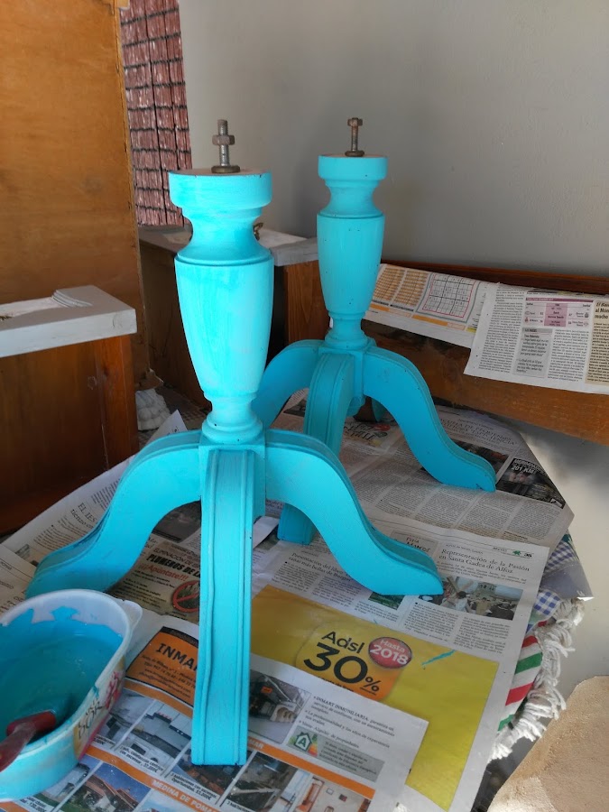 El segundo paso fué pintarlas con pintura de color turquesa plástica mate ( la de paredes y techos ).