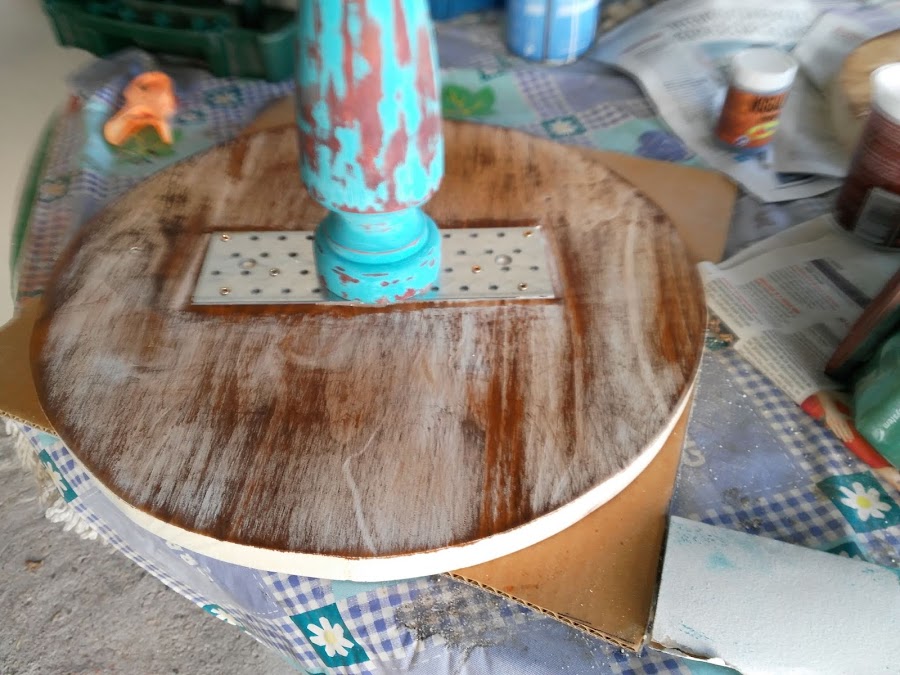 Para el tercer paso utilicé una lija para hacer un decapé muy vistoso por toda la pata.