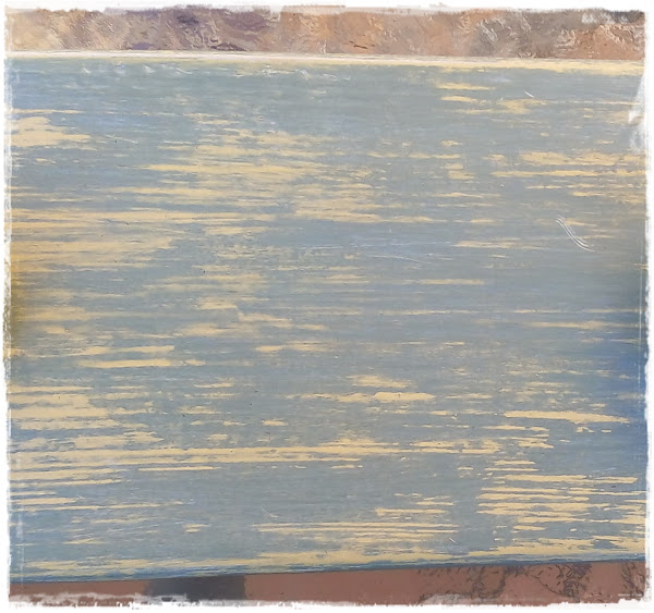 Una vez seca, apliqué cera incolora, por donde queria mas tarde decapar. Dar el segundo color, en este caso un color azul claro, para cubrir bien, di dos capas.