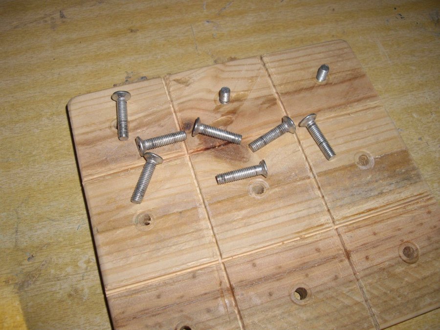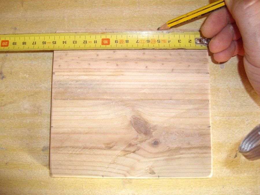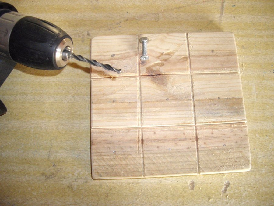 Ahora con una broca para madera perforamos por la mitad de cada recuadro, en cada una de ellas vamos a poner un tornillo tuerca.
