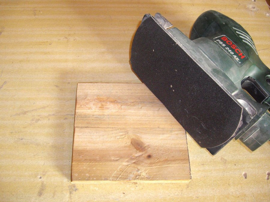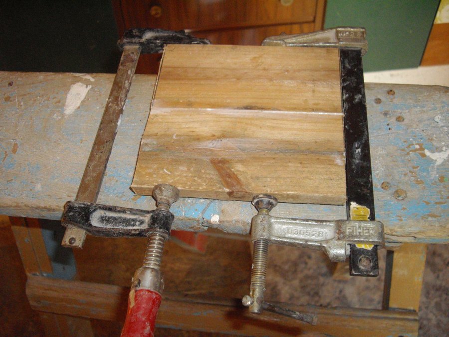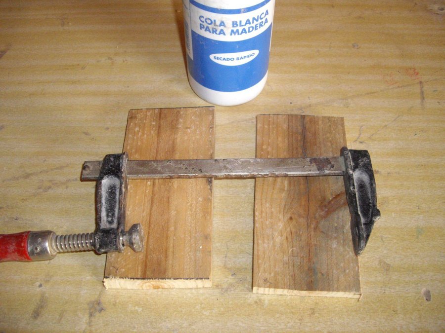 Para obtener el tablero, une por sus cantos con cola blanca para madera las tablas palé, presiónalas con los gatos de apriete hasta su secado.