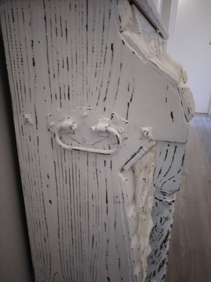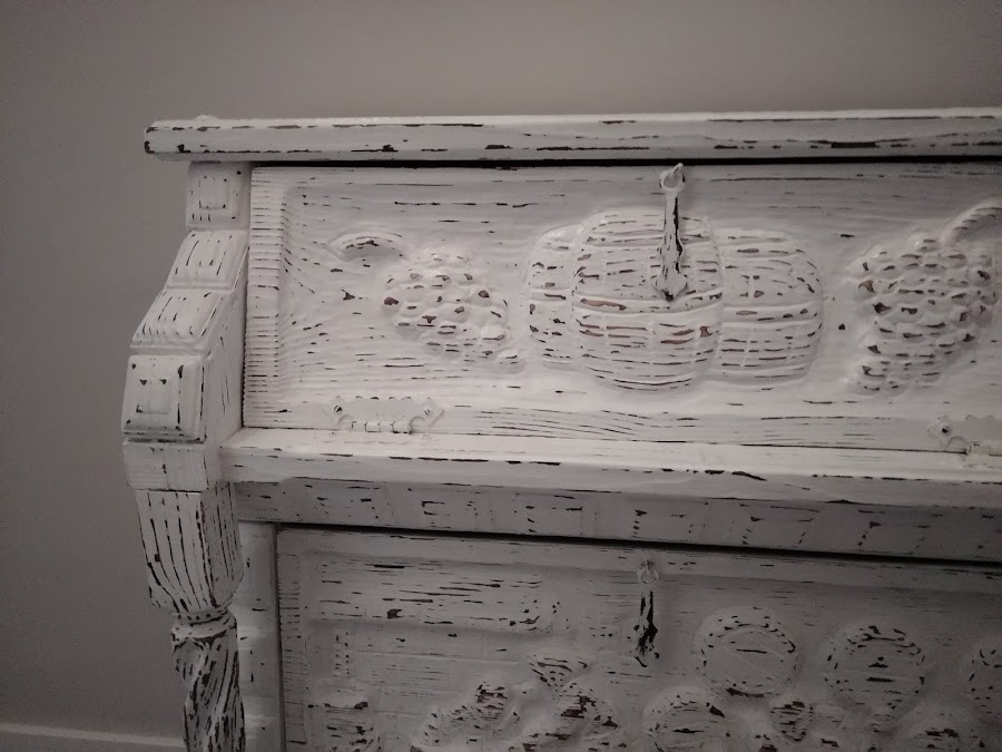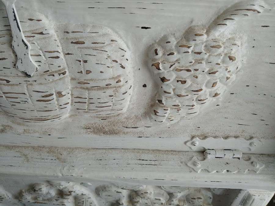 Se trata de un mueble muy rústico en madera maciza y muy antiguo al que su dueña tiene muchísimo cariño porque es una herencia familiar. Tiene unos bodegones con escenas muy bonitas .