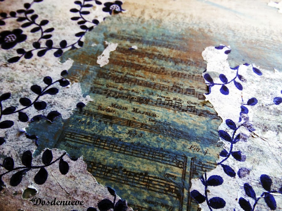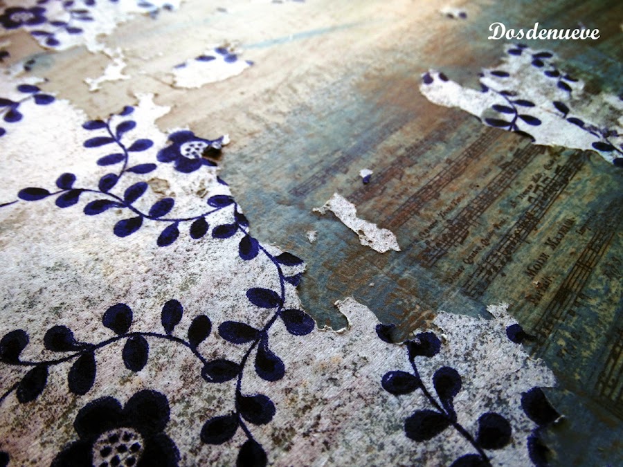 Al tratarse de una servilleta de fondo blanco conseguimos que la pintura de abajo "trepara" y se transparentara a través del dibujo, lo que acentuaba el aspecto decadente.