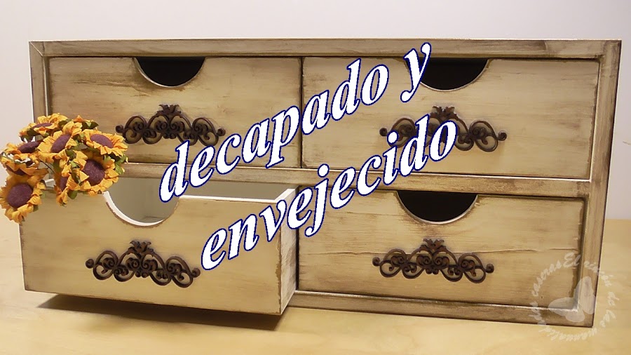 La técnica del decapado consiste en darle a la madera un aspecto desgastado y usado. Un estilo vintage o shabby chic que tan de moda está hoy en día. Aquí puedes ver otro trabajo mío con esta técnica. Lo he rematado con un envejecido que puede ser de diferentes técnicas, pero yo me he decantado por utilizar el betún de judea.