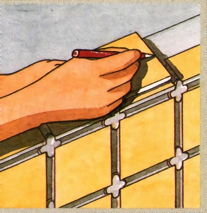 Cuando llegue a la esquina interior tendrá que superponer el azulejo en el hueco correspondiente y marcar la línea de corte.