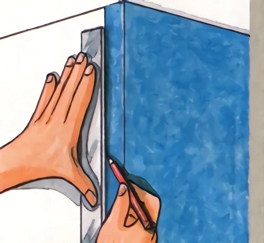Con plomada, regla y lápiz marque una vertical en la siguiente pared, a 2.5 cm. de la esquina.