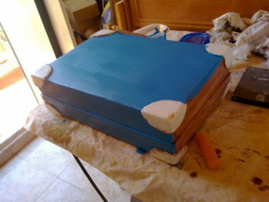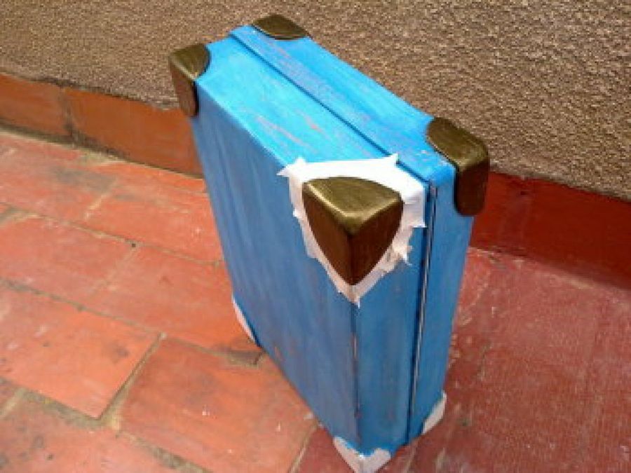8 Kovakk decidió que quería la maleta en tonos azules, pero con un toque envejecido, por lo que aplicó el color y luego decapante.