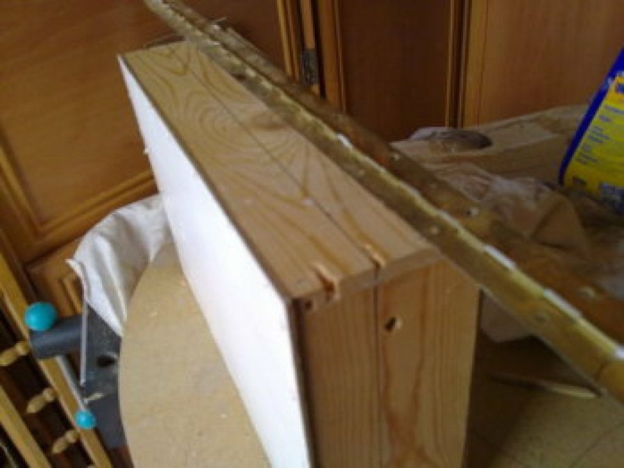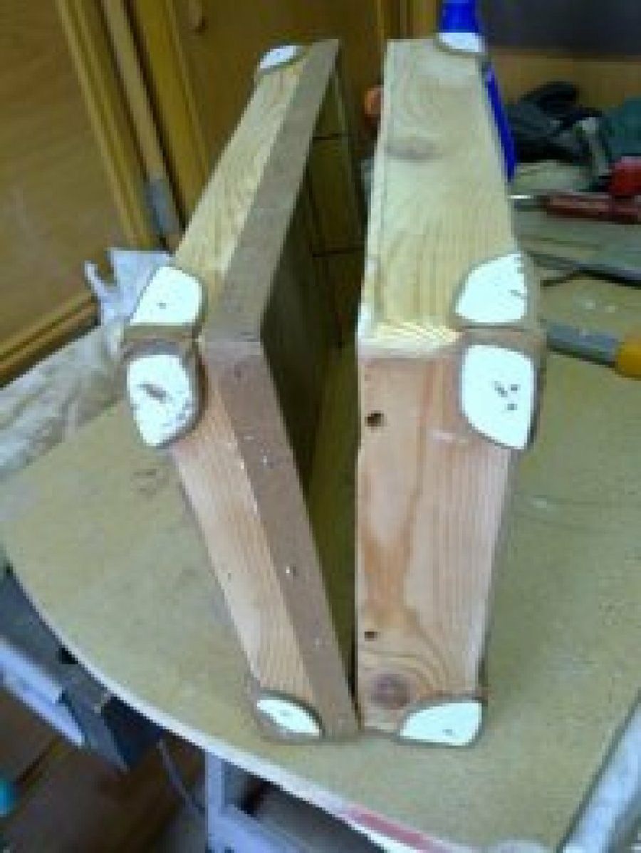 3 A continuación unimos ambas partes con una bisagra, que podemos recortar a la medida deseada para que encaje perfectamente entre ambas partes. La bisagra podemos acoplarla simplemente atornillando o clavando.