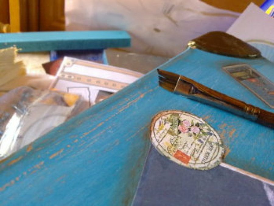 10 Por último, utilizó la técnica del decoupage para conseguir el resultado final, añadiendo unas imágenes que encontró por la red. Además, para continuar con el estilo antiguo, aportó un toque envejecido sombreando las imágenes.