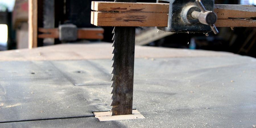 La hoja de sierra viene en forma de una banda de acero dentada. Sus longitudes de corte de entre 15 y 3 metros varían de un modelo a otro, mientras que sus anchuras de corte dependen del grosor del material a cortar y si vamos a cortar en forma recta o curva.