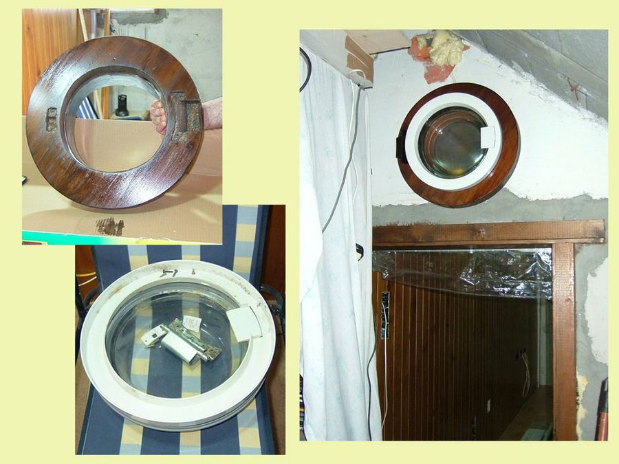 Aquí está la idea genial de nuestros amigos para el ventanuco redondo sobre la entrada: como ojo de buey pusieron? ¡la puerta de una lavadora!
