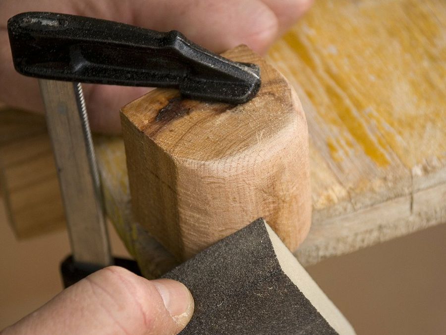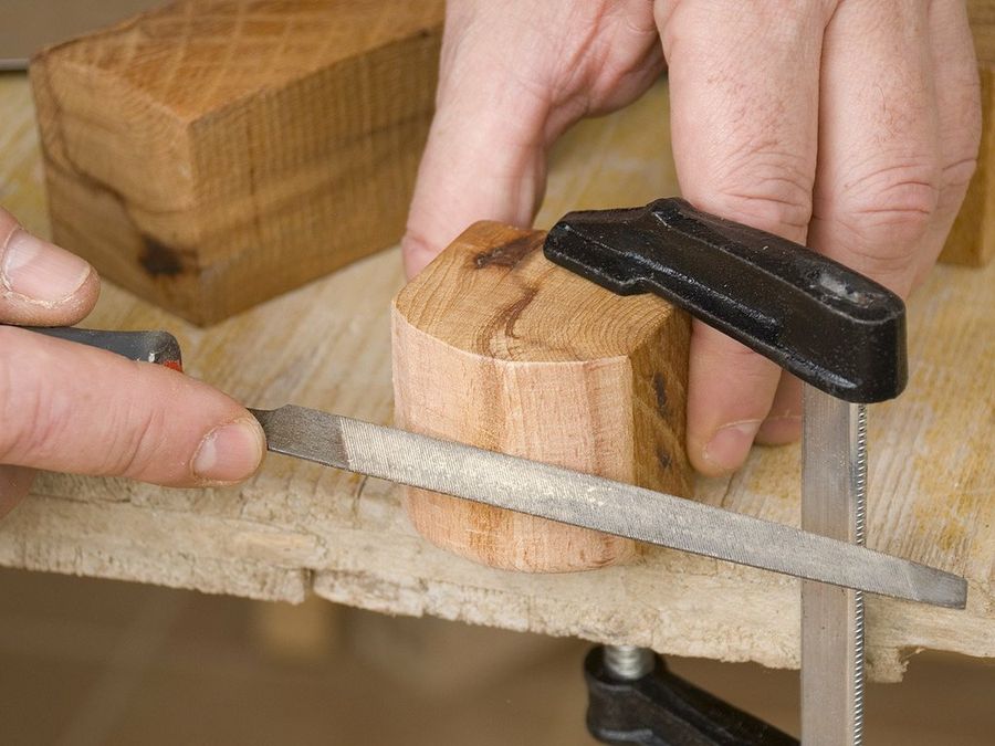 Ahora examinaremos los trenes de juguete, aprendiendo una manera sencilla de tallar la pieza más importante, la caldera de la locomotora. El comienzo es un buen tarugo de madera, sobrante de las patas de una mesa. Empezamos biselando las aristas, buscando la simpática forma rechoncha de un trenecito.