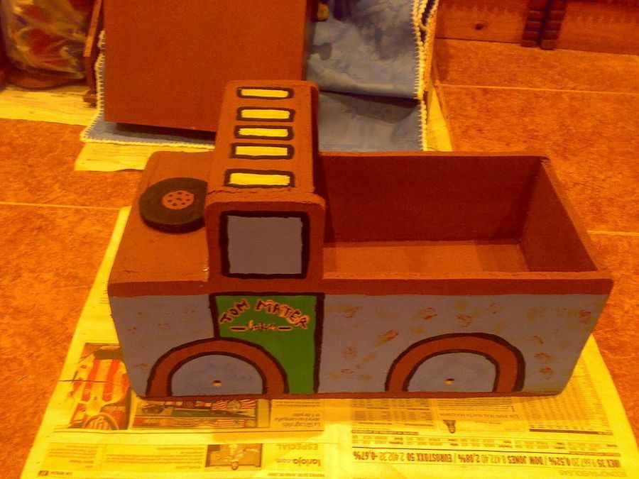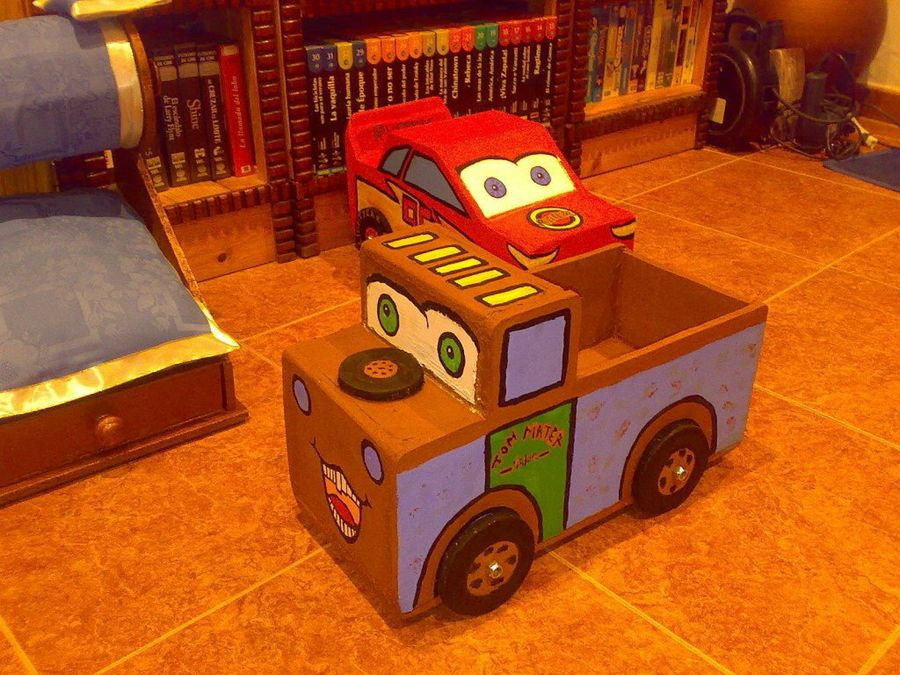 El material empleado por la artista en el camión y el coche es el tablero DM de 10mm. Hizo ambos vehículos dibujando ella misma los planos, a partir de una foto de la película “Cars”. Según afirma Asun33, no le salieron exactamente iguales “pues no puedo hacerlos redondeados, pero algo se parecen”. Además de parecerse a los simpáticos protagonistas de la película, sus diseños tienen un encanto muy especial, gracias a las formas infantiles y a los alegres colores.