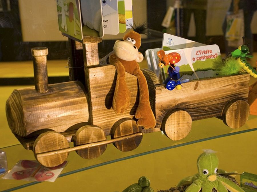 De esta manera tan rápida y económica obtenemos la pieza clave de nuestra locomotora. Para hacer los restantes elementos y completar el montaje, podemos inspirarnos en un modelo atractivo, como este simpático tren que vimos en una feria de artesanías. ¡No te compliques repitiendo el modelo al pie de la letra, diviértete y adapta el juguete a los materiales que hayas encontrado!
