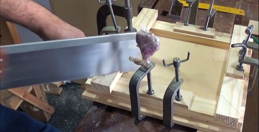 - Cortamos con el serrucho de costilla. Es conveniente que esté bien afilado para trabajar bien cómodos y con un esfuerzo mínimo.