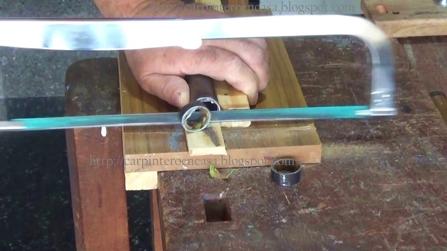 Luego cortamos del caño dos aros, de aproximadamente 1 cm de ancho.