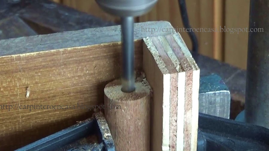 Luego perforamos colocando el listón en forma vertical, a una profundidad 2 o 3 mm mayor que el largo del perno de enganche.