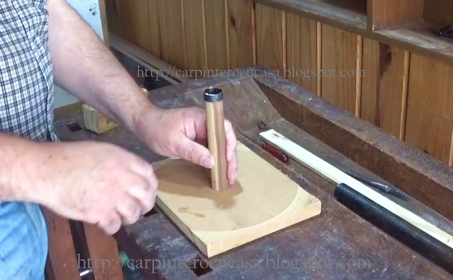Empujamos luego los aros un poco más abajo, con el trozo de caño restante de los cortes. Sólo haremos que sobre 5 u 7 mm de madera en los extremos.