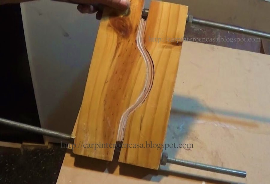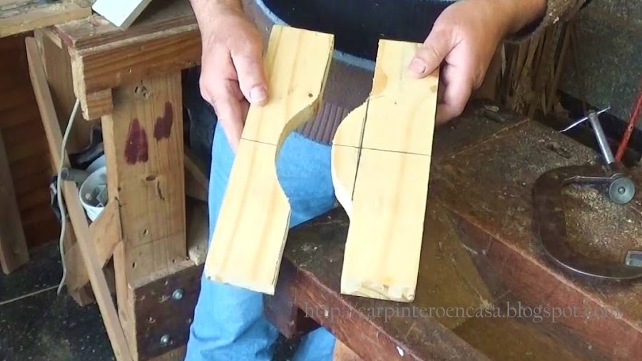 Cortamos luego con la sierra caladora, o con una sin fin, por el centro de la línea más larga tomando también todas las curvas. Tendremos dos piezas. Una será el positivo y otra el negativo.