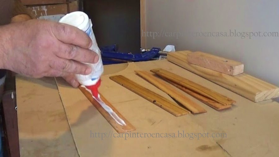Colocamos de a una, en sus caras, cola vinílica o cola de carpintero, y las vamos superponiendo una con otra. No debe ponerse cola en las caras que apoyarán contra la matriz.