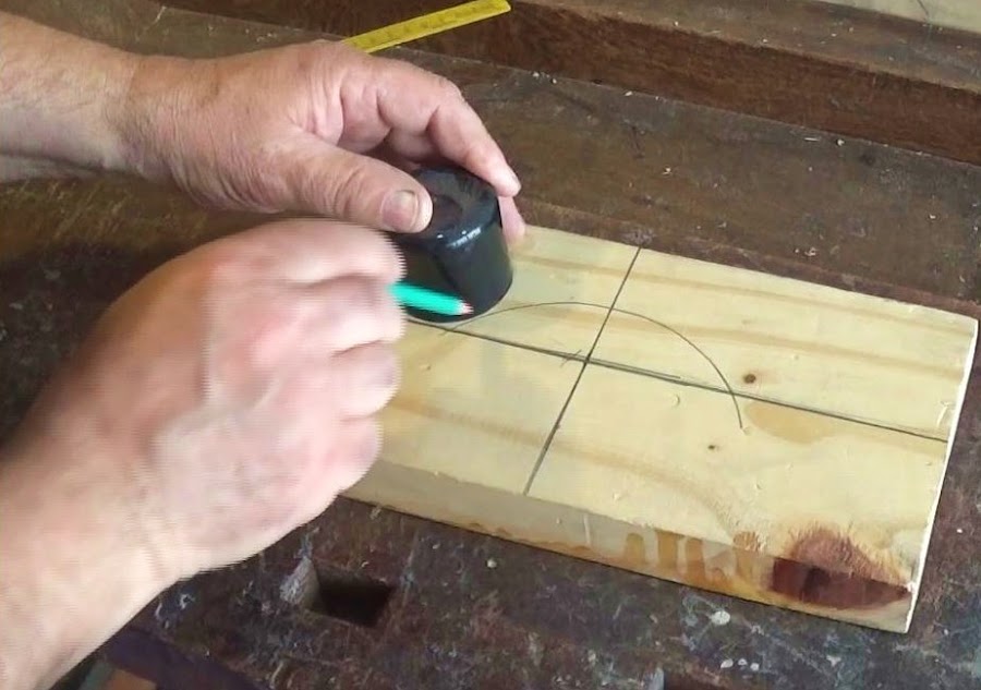 Luego con algo circular como un disco, una lata, o con un compás, marcamos una curva sobre la línea mas larga que sobrepase sobre ella unos 30 mm en el centro, como se ve en la imagen abajo.