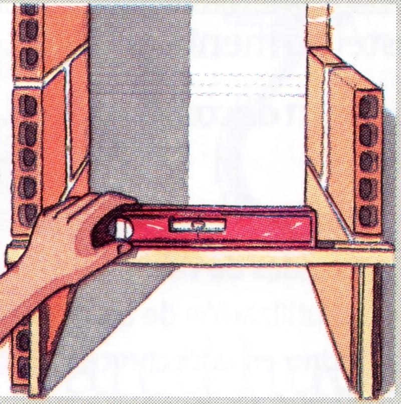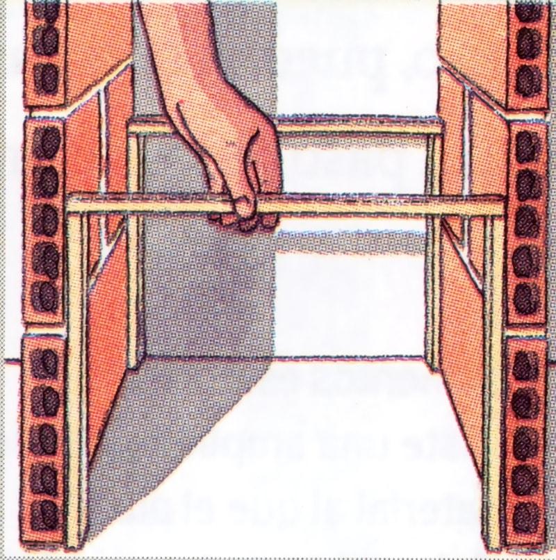 Corte cuatro listones de madera y situelos en la parte interior de los ladrillos.