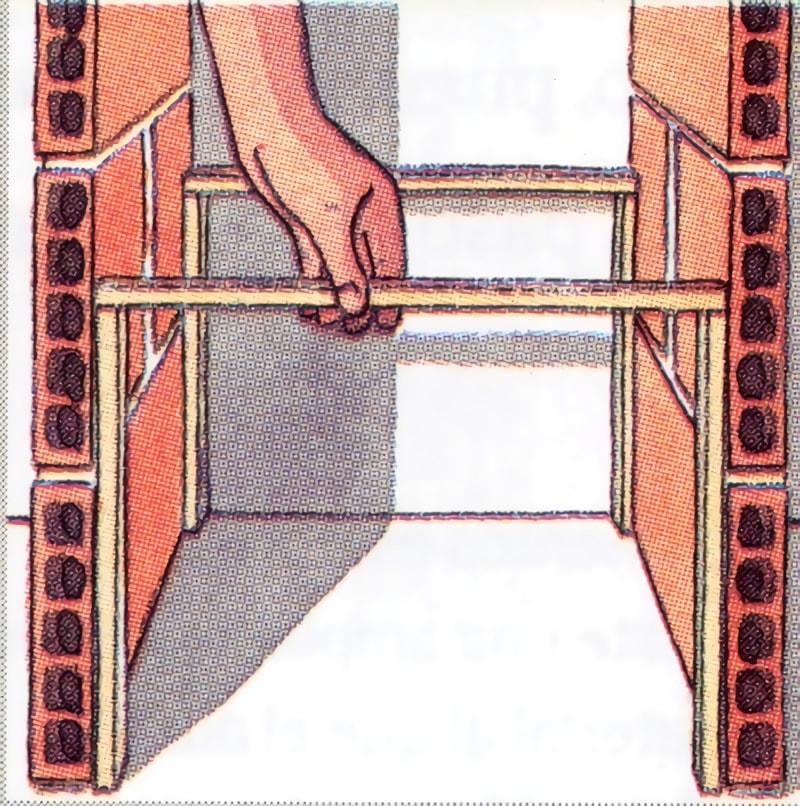 Corte cuatro listones de madera y situelos en la parte interior de los ladrillos.