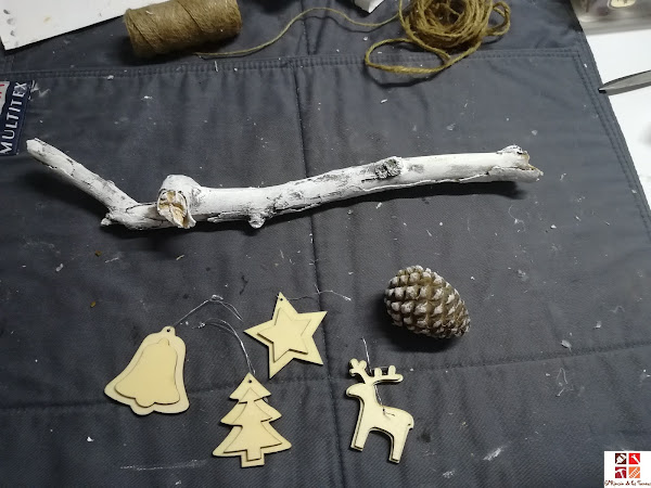 piñas, adornos de madera para pintar o adornos navideños que tengáis por casa
