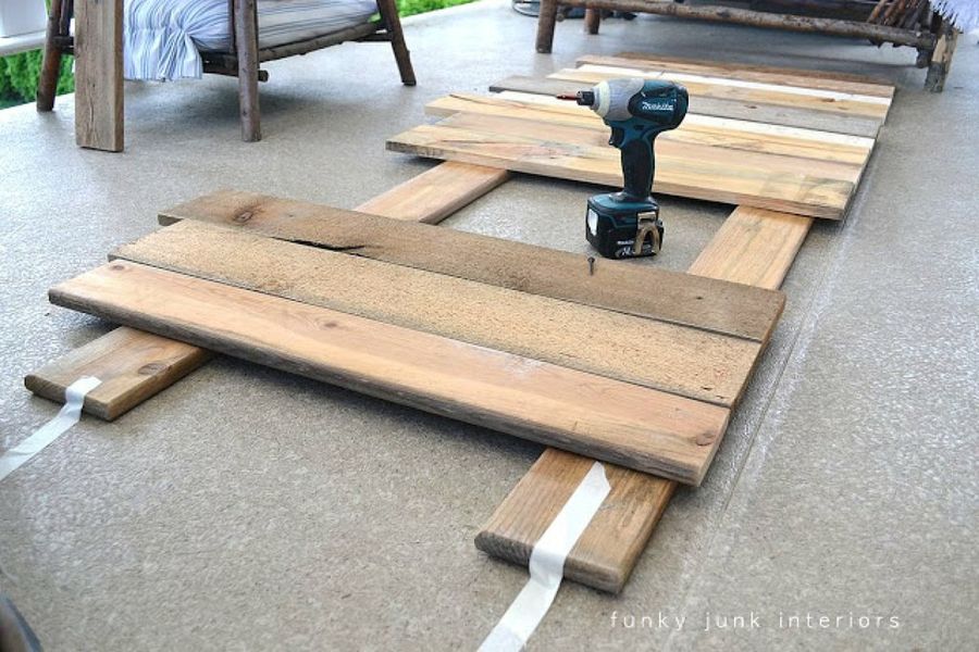 Una vez hemos terminado la estructura, tendremos que cubrir con una base de tablas de palé, que fijaremos con tornillos.