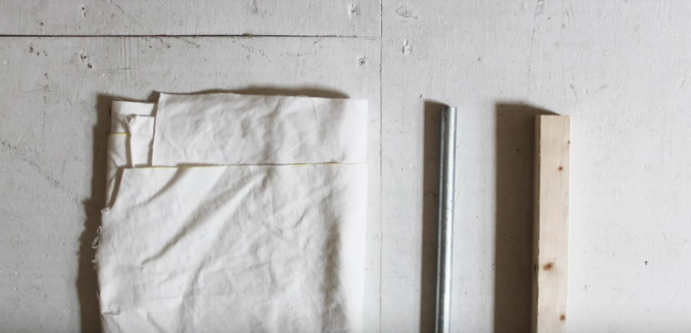 4 Montar cada una de las partes que van a componer el biombo con las barras, las escuadras y las cortinas ya cosidas, y unirlas con los tacos de madera.