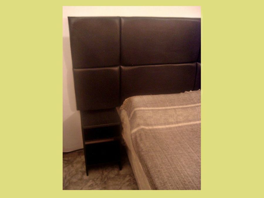 El tablero DM de 15 mm es bastante pesado, y "para colgar el cabecero de la pared me inspiré en el sistema de montaje que suelen traer los teléfonos fijos", explica Marco_ab. "Utilicé un listón cuadrado al que le practiqué unos agujeros, lo atornillé por detrás al tablero grande y en la pared puse tres tarugos con bulones para que soporten la carga del respaldo".