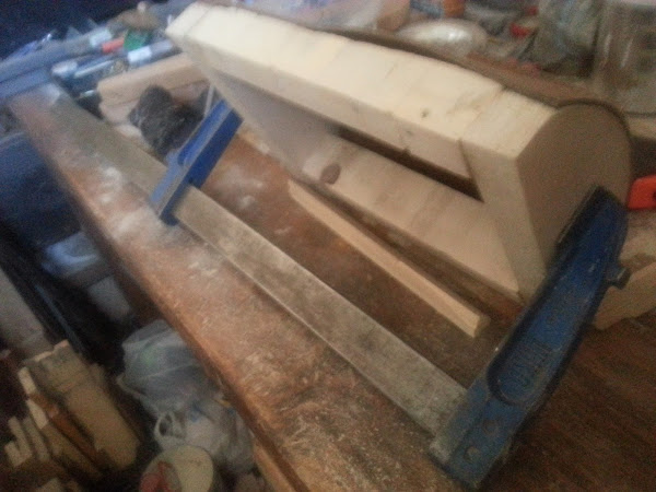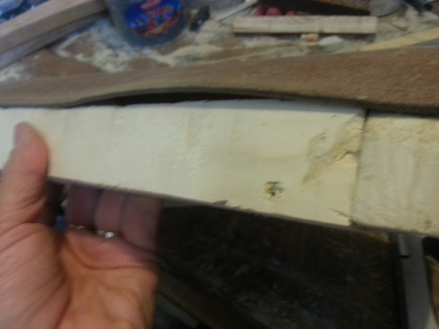 Cualquier carpintero diría que menuda chapuza, pero como yo no soy carpintera y voy improvisando sobre la marcha...... y para que se me entienda, el listón en ángulo que muestro en la foto le utilizo para rellenar el hueco que me queda, ya que debería haber cortado el inglete con la misma pieza pero como no se, pues así lo hago.
