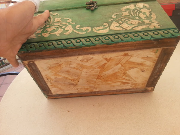 Mi amiga M Jose del blog la libelula que reinventa tus trastos durante varios días esperaba la respuesta al misterio como hice la tapa del cofre. Pues aquí esta el misterio.