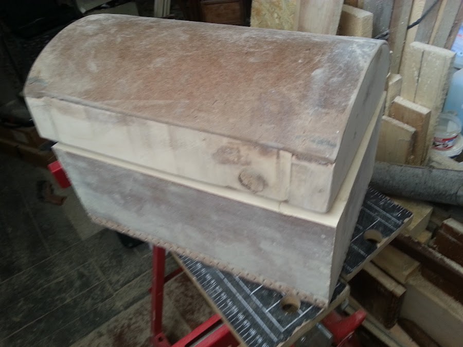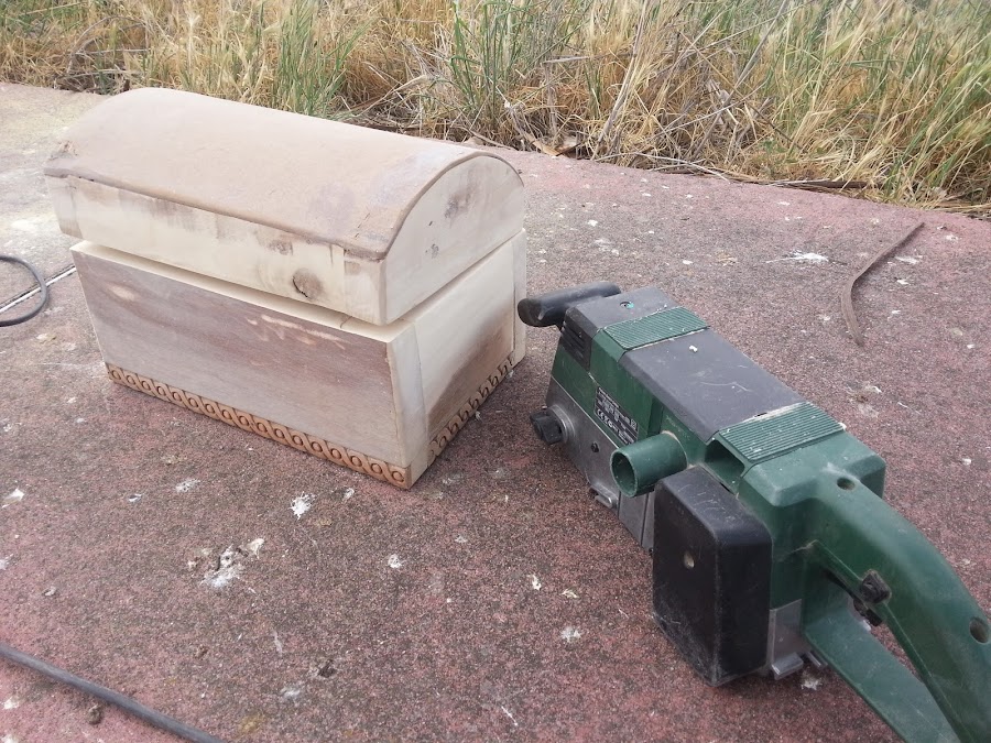 Pues a grandes males grandes remedios, con la lijadora de banda se come lo que sobra por todos los lados. Logrando que quede bien a escuadra, y confronte la tapa con la caja del cofre.