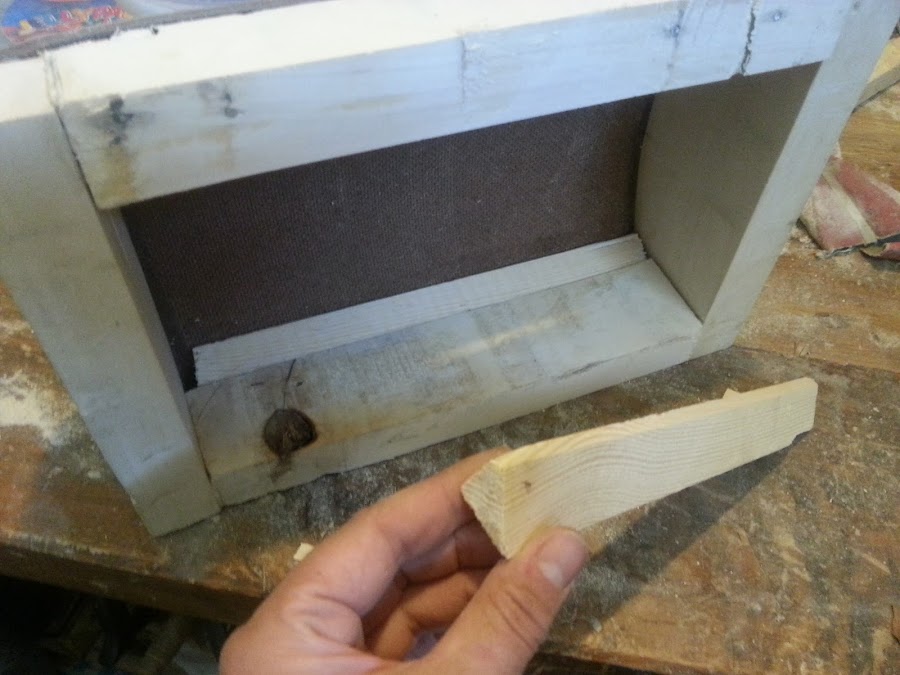 Aquí se ve como queda el listón en ángulo. Con ello logro también dar mas consistencia a la tapa.