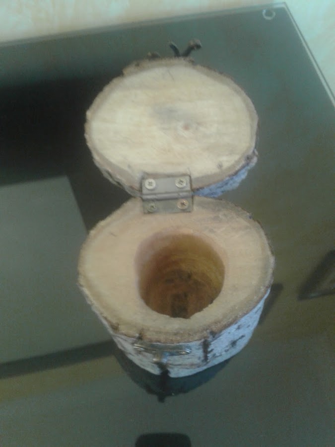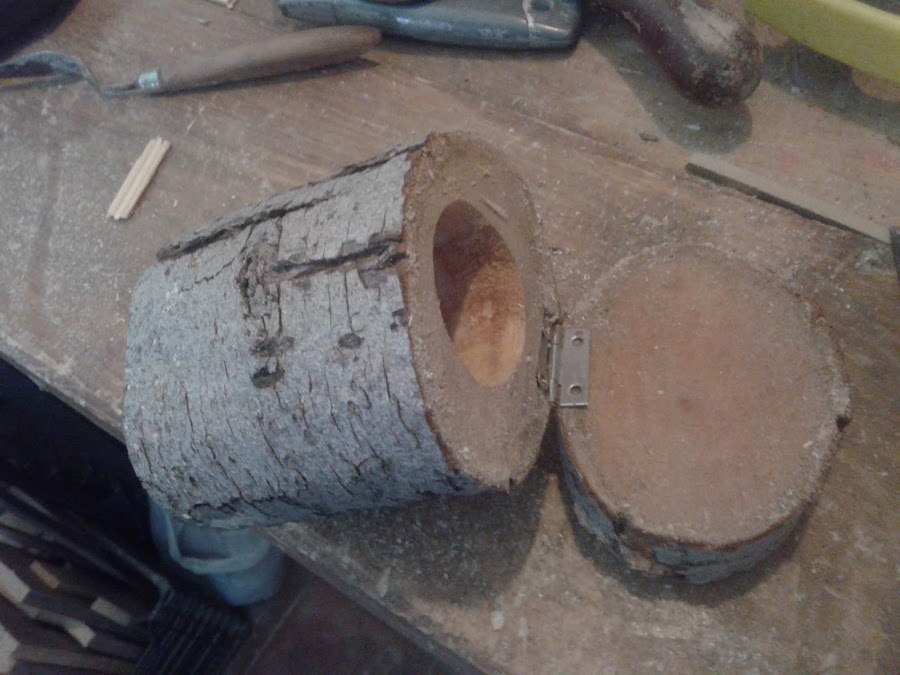 Con el taladro y una broca de pala gruesa, procedo hacer el orificio, donde podremos guardar nuestra pequeñas joyas.