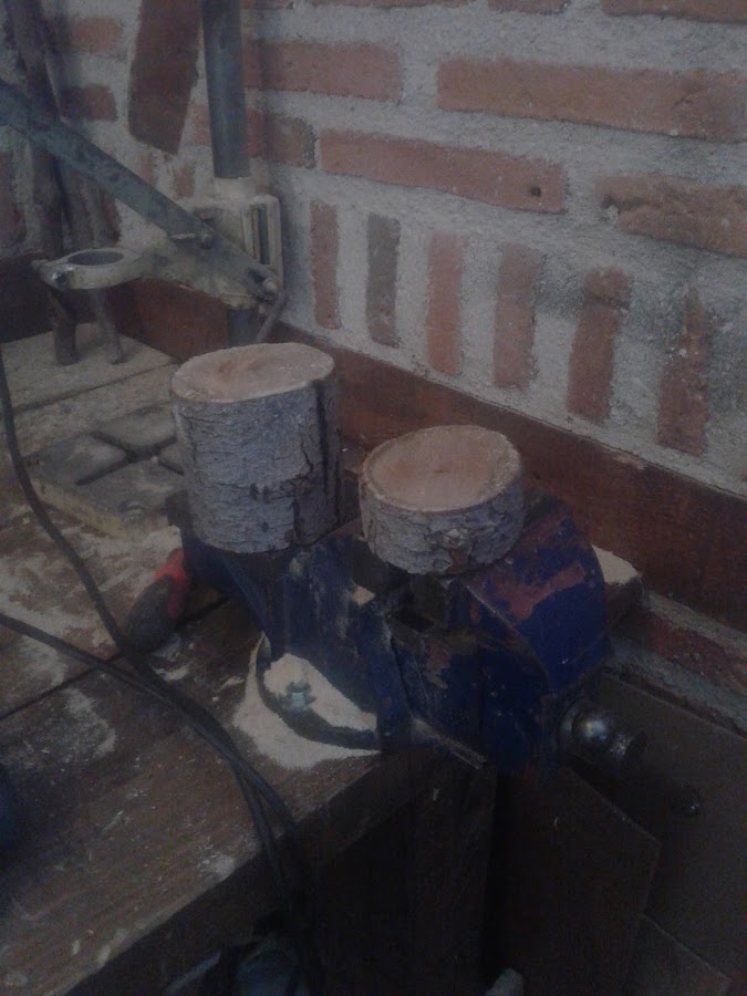 Fijo la rama al banco de trabajo con un gato y con el serrucho de costilla procedo a cortar dos partes una será la caja y la otra mas fina será la tapa.