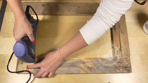 Lo primero que hice fue cortar los listones de madera a la medida que necesitaba para que cupiese la cuchara y los lijé muy bien ya que la madera de palet tiene muchas astillitas.