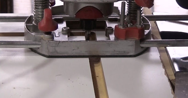 Colocamos otra fresa con un diámetro mas chico, en este caso 3 mm, para atravesar la placa. Pasaremos por el mismo surco que fue hecho con la fresa de 13 mm, bien contra el borde interno de éste.