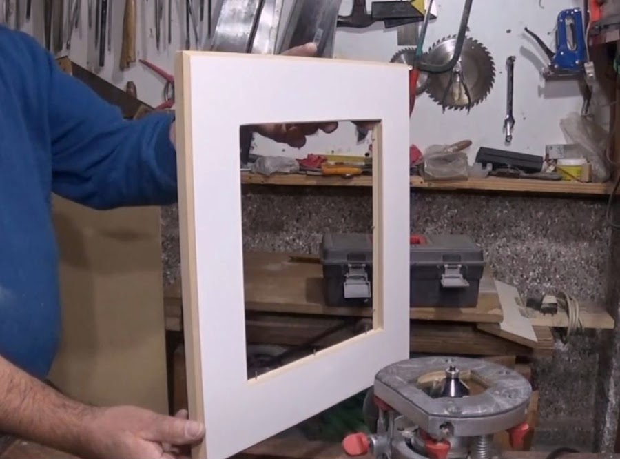 Prolijamos las cuatro esquinas del marco, cortando con un formón. Luego lijamos todo el perímetro interno, matándo los cantos.