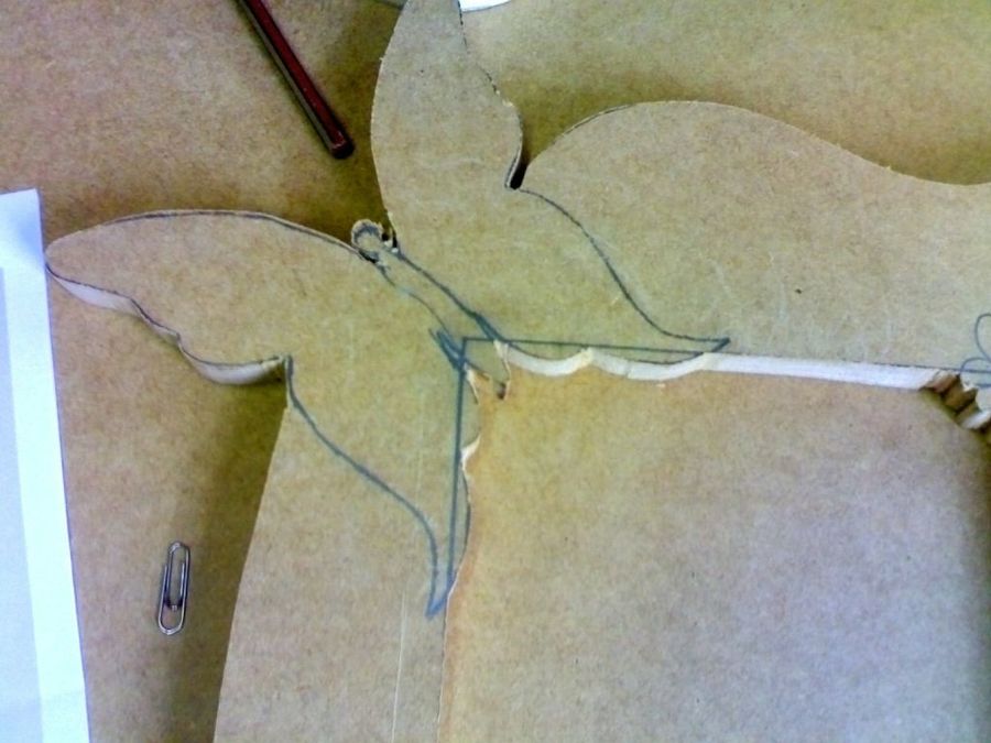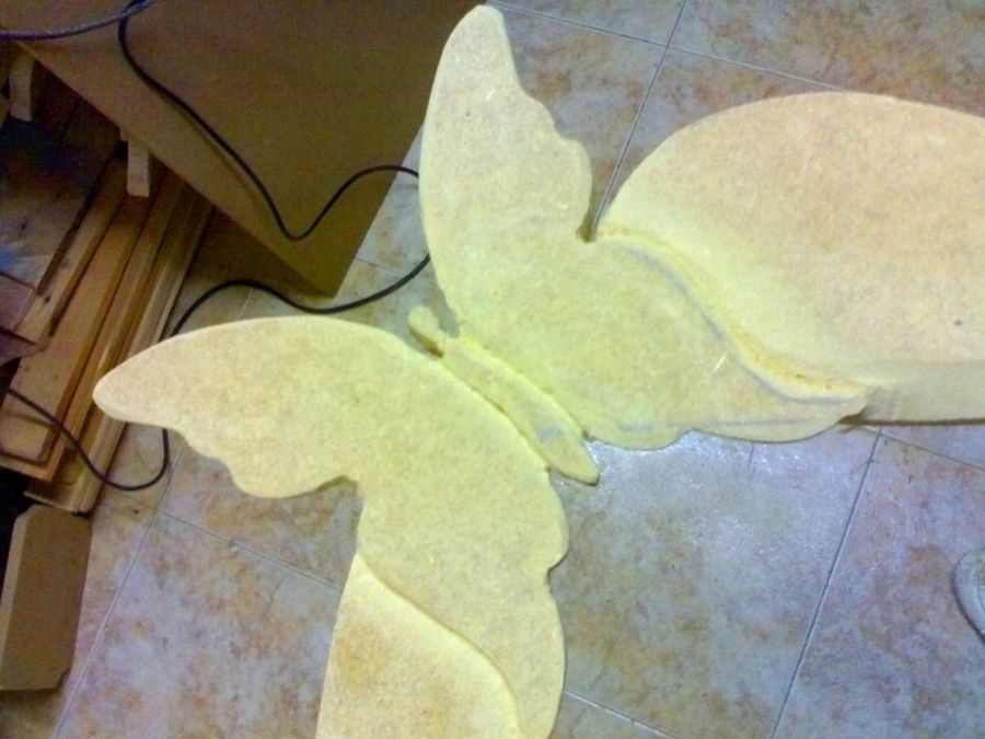 Un primer plano de la mariposa, elemento que tiene mucho protagonismo en el diseño. Recordemos que el DM es un material adecuado para la talla, así que podemos darle un atractivo relieve al contorno, cosa que hace nuestro amigo Kovakk.