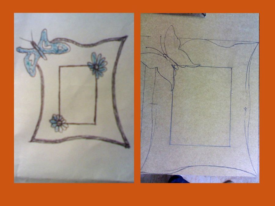 Como buen artesano, nuestro amigo Kovakk empieza su marco diseñado abocetando el diseño, para tener un sólido punto de partida. "Esta mañana mientras le cambiaban el aceite a mi coche hice unos bocetos para un portarretratos que quiero dedicar a una niña rubia preciosa".