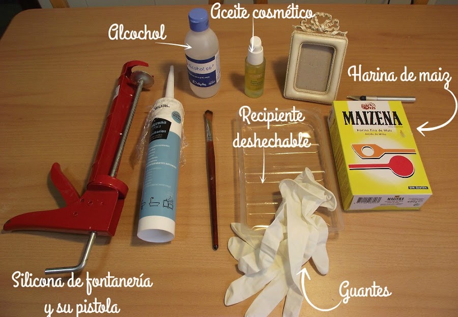 Para esta tarea hice primero un molde de silicona, utilizando el lazo de uno de los otros marcos que estaba completo. Estos son los materiales que utilicé:
