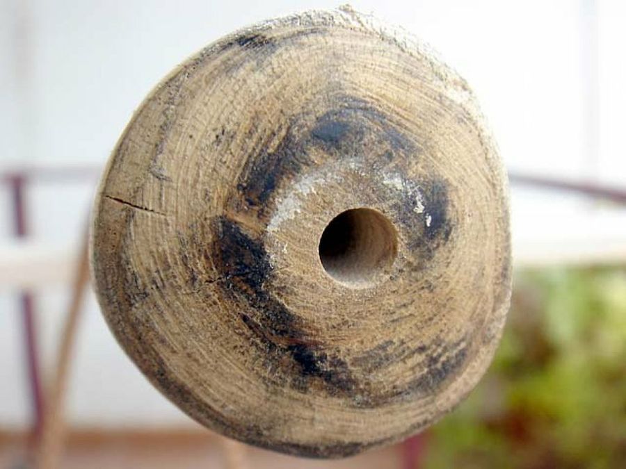 En tales situaciones los fotógrafos recurren al monopié, un bastón con una fijación en el extremo para enroscar la cámara, igual que los trípodes. Estos accesorios no son fáciles de encontrar, y resultan caros, así que os contaremos cómo hacer un barato y sencillo monopié, que os permitirá sacar fotos nítidas con baja iluminación, y además de la forma más discreta. Veamos cómo se instala una rosca fotográfica en un genuino bastón de senderista, adquirido en un pueblo de la sierra.