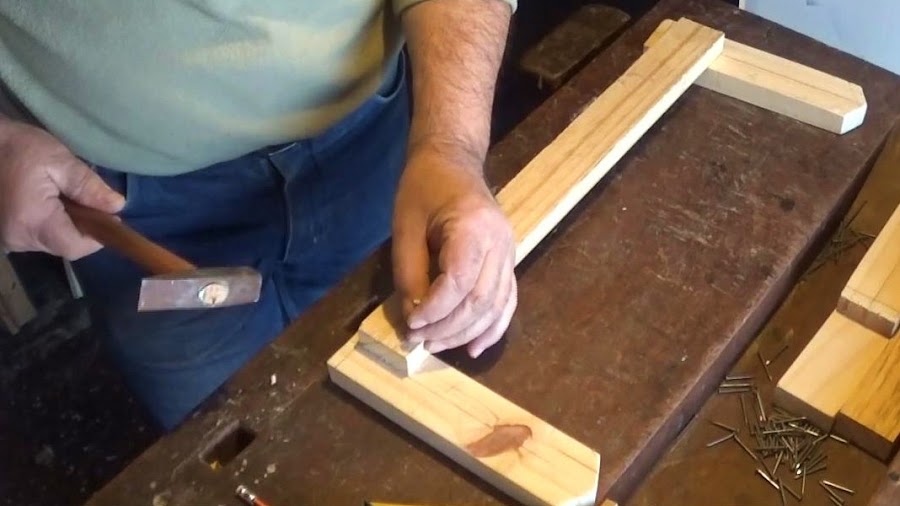 Las cabezas de éstos llegarán hasta la marca central de los listones esquineros. Quedará libre 1 cm abajo, ya marcado.